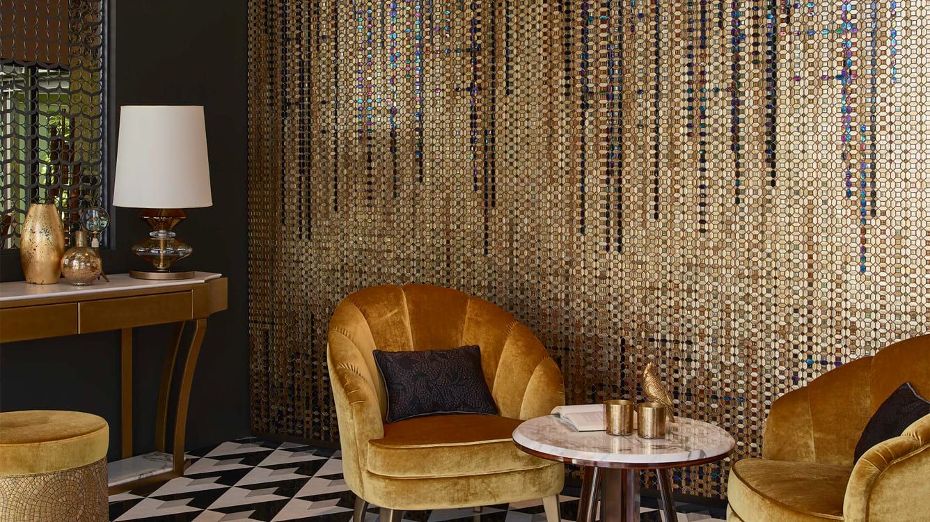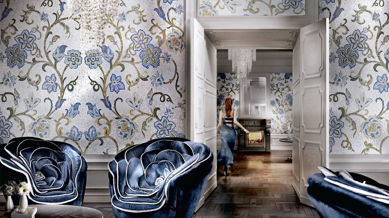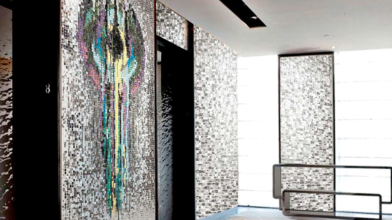 Компания Sicis не могла упустить возможность участвовать в работе над художественным оформлением эксклюзивного отеля Desigh Hotel в Шанхае. Холл декорирован блестящей золотой мозаичной плиткой, а эксклюзивные номера-люкс украшены прекрасными мозаичными панно из коллекции "Портрет".